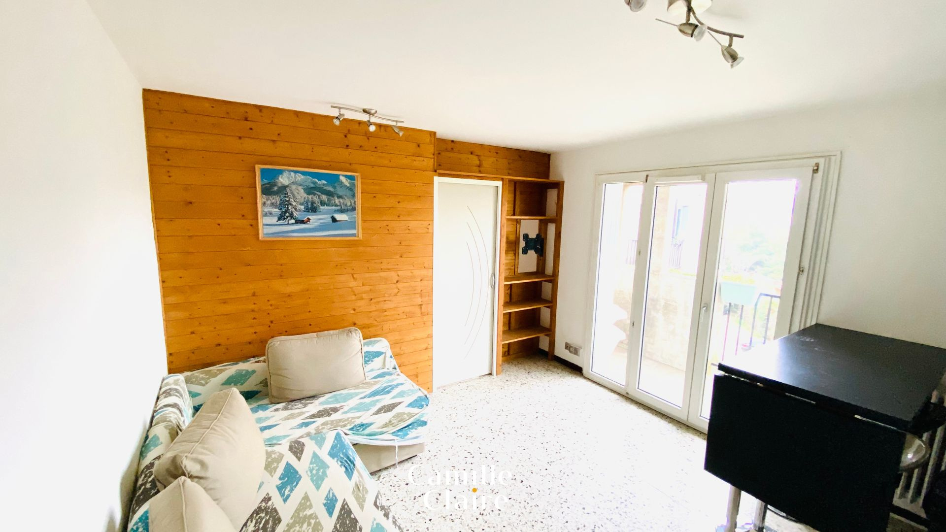 Ce bien dispose d’un séjour lumineux avec une cuisine ouverte donnant sur balcon, une chambre exposée Sud avec placards aménagés ainsi qu’une salle d’eau avec wc.
