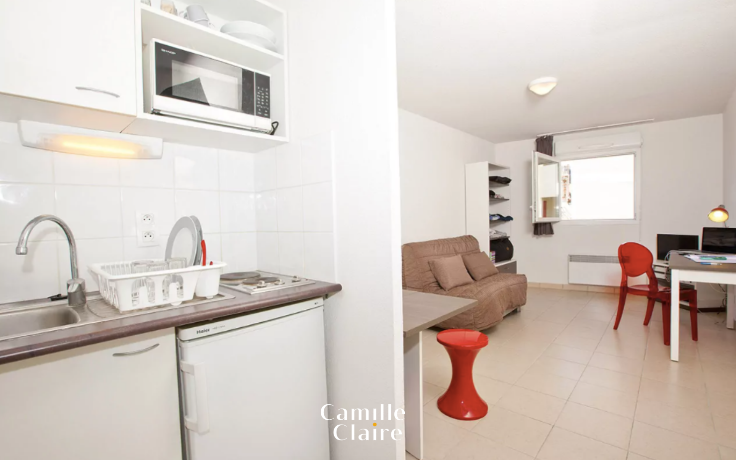 Cet appartement est à proximité immédiate des écoles, facultés et du centre ville de marseille . Le studio meublé à une surface habitable d’env 19,10 m2, complètement meublé, exposition Ouest, et cet investissement vous permettra de vous créer des revenus complémentaires non fiscalisables.